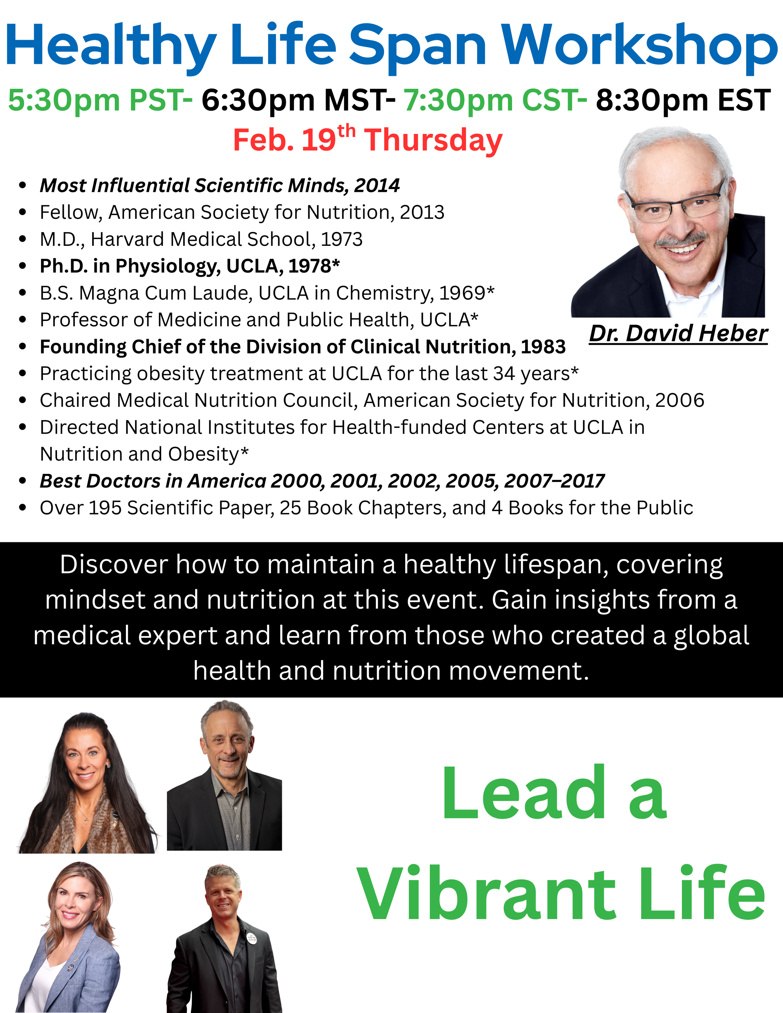 Register for the Online Event Do not miss this event full of information and inspiration on how to lead a Healthy Life as we get older