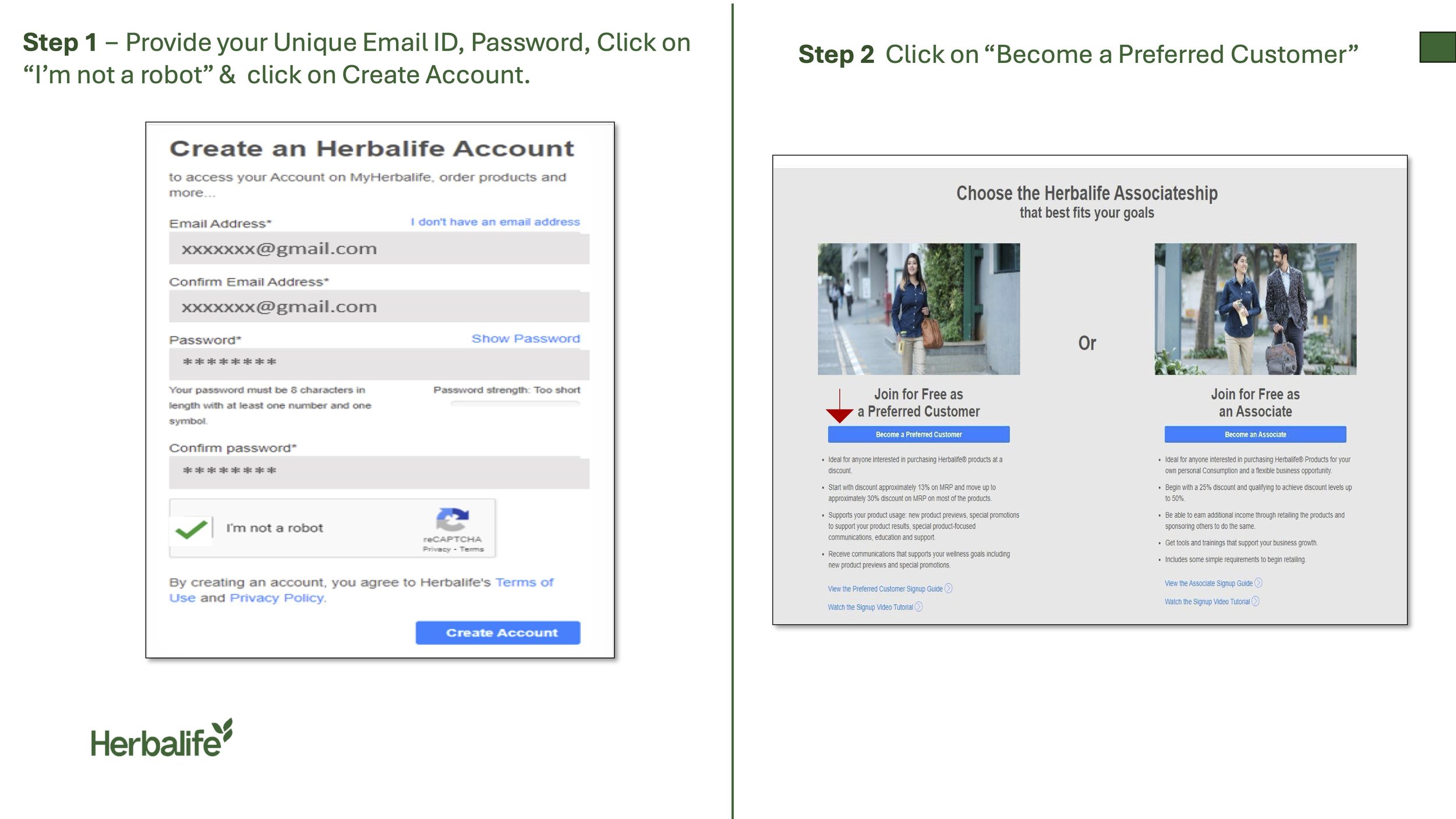 See Below for a Step by Step Process on how to Sign up for your FREE Herbalife account!